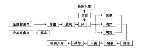 5.6.1 风干后的原料肉可经过蒸煮(或烘烤或油炸)等单一方式进行熟制,或采用几种方式进行联合熟制;也可不经熟制直接包装为成品。