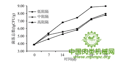 2.1 不同阻隔性包装材料对冷鲜牛肉菌落总数的影响