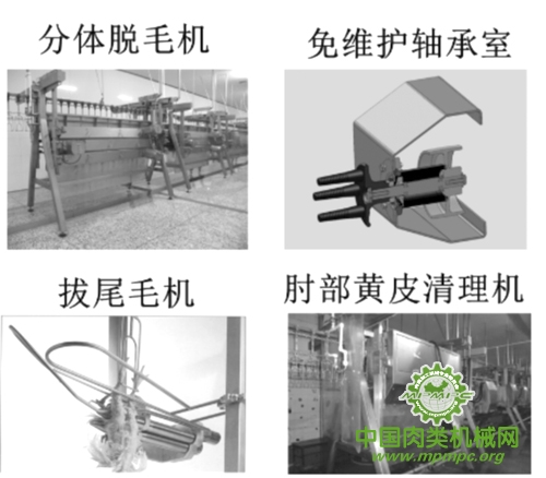 由于近几年生鲜品和熟食产品增加,家禽体表质量要求越来越高,浸烫时间有原来的60秒增加到了90秒,脱毛机将全部采用分体式脱毛机,脱毛机的脱毛盘转数也将实施变转数控制。拔尾毛机,肘部黄皮清理机等一些辅助脱毛设备将得到推广应用(见图),提高综合脱毛效果。