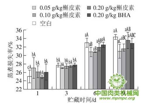 图5 槲皮素对冷藏猪肉糜蒸煮损失率的影响