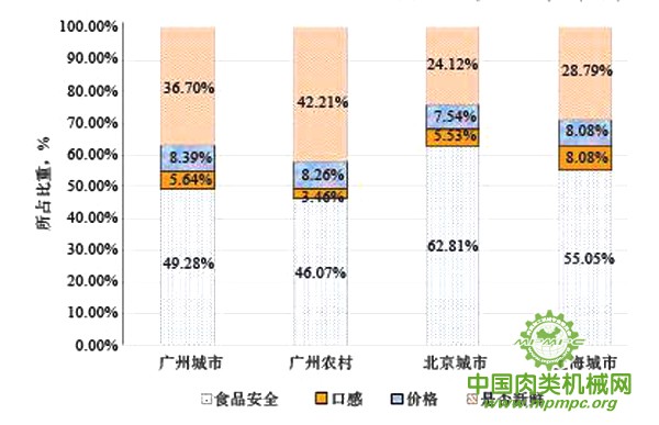 在数据整理核对过程中,本文将不完整的调查结果剔除,包括:部分受访问消费者拒绝回答个人收入水平、年龄等问题;部分消费者回答内容的真实性存疑(比如某受访问消费者回答平均每月外出就餐食用猪肉200斤以上)等情况。最终经过筛选后的样本量为1911份(广州城市地区763份、广州农村地区751份、北京城市地区199份、上海城市地区198份)。