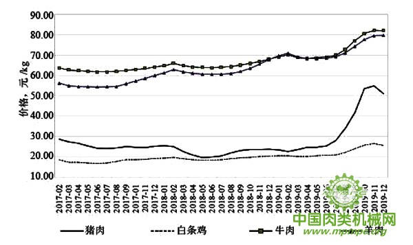 图1 2017—2019年我国主要肉类食品集贸市场价格
