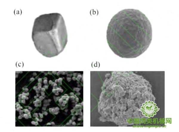注:(a)正常形状盐颗粒;(b)商用SODA-LO 盐微球;(c)壳聚糖/柠檬酸/ NaCl微球;(d)壳聚糖/乳酸/ NaCl微球。