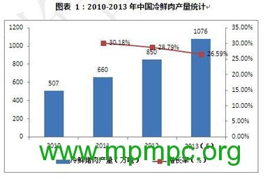 2010-2013年中国冷鲜肉产量统计