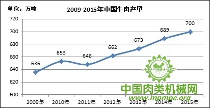 2015年我国牛肉产量为700万吨,较2014年的 689万吨增加11万吨,同比增长1.6%,达到近五年的最高值(见图4)。