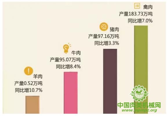 羊肉(包括羔羊肉)产量0.52万吨,同比增10.7%。