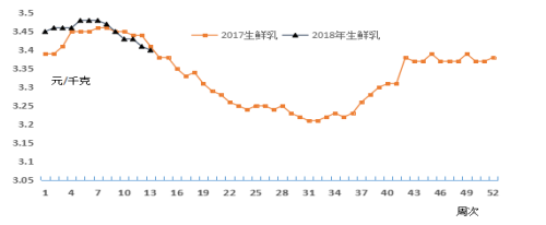 (二)生鲜乳收购价格平稳。第一季度全省生鲜乳均价(奶站收购价)3.45元/千克,同比微增。延续去年8月份以来的上涨势头,在消费拉动下,年前涨至3.48元/千克,3月底下滑到3.4元/千克,同环比均下降0.3%。