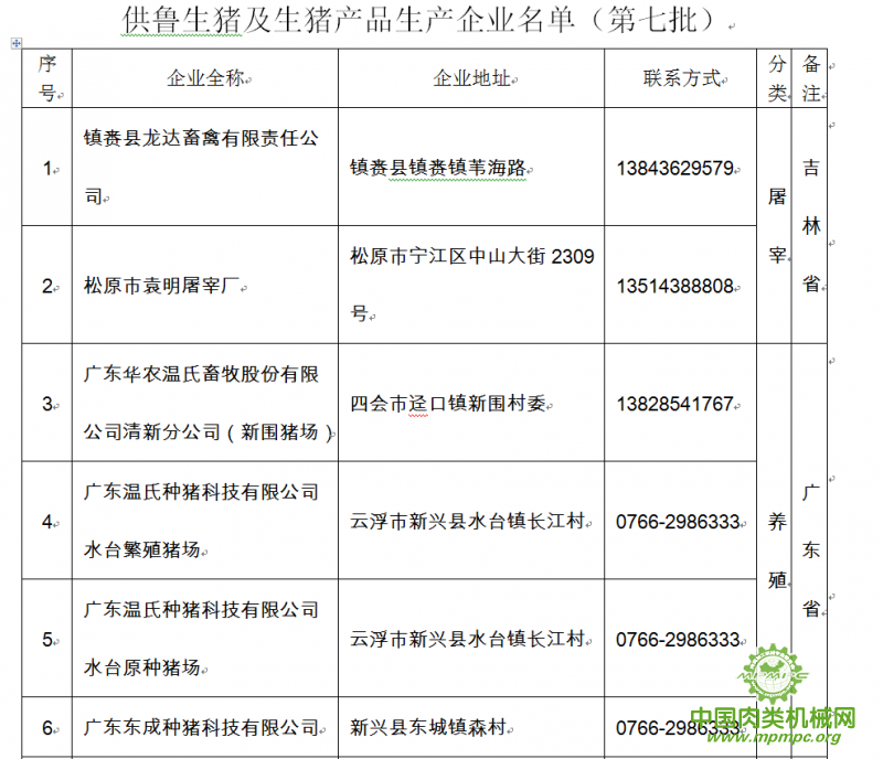 山东省畜牧兽医局消息,日前,经有关省市动物卫生监督机构推荐,山东省动物卫生监督所审核,第7批17家企业省外企业符合要求,可向山东提供生猪及生猪产品。