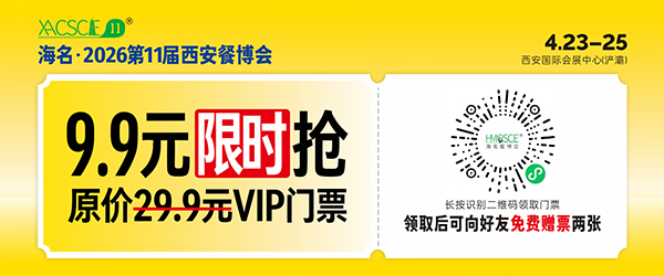 餐饮人选品焕新第一站,先来海名西安餐博会!海名·2026第11届西安餐饮供应链博览会,4月23-25日西安国际会展中心(浐灞)盛大启幕。这是西北规模最大、下沉最深、成交效率最高的餐饮供应链旗舰展,既是全国品牌拓西北、建渠道、招代理的首选跳板,也是西北餐饮人2026年选品焕新、破局增长的必赴盛会。