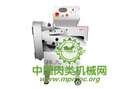 新型斩排骨机TJ-303A,此机是本公司自行研发、设计的一款新型斩排骨机,采用特制双刀能将龙骨,猪蹄,猪小排大排等带骨物料,将横条状的排骨切成块,长短可调。