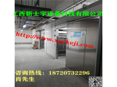 采用高效加湿系统,可在低温环境下使空气高湿度达到90%以上,在解冻库内形成低温高湿气流组织,并采用分阶段温度解冻,在保证解冻产品质量的前提下,缩短解冻时间。标准食品卫生要求库内配有除菌消毒装置,可彻底清除空气及食品表面细菌,消除了"水冲解冻"和"自然解冻"造成的食品相互污染,满足食品卫生的要求。