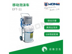 EFT-11移动泡沫小车全不锈钢机体,标配60升容积、HDPE材质的清洗液储罐,食品级硅胶轮结实耐用,轻便静音,标配10米进口食品级清洗软管,让机器在车间各个角落移动更灵活更高效。WONE联合食安专利的发泡技术,能产生高达30倍的丰富细腻泡沫,对去除食品厂、肉类加工厂和中央厨房等油污油脂更高效更彻底。进口品牌高压泵能让打出的泡沫喷射距离达10米。